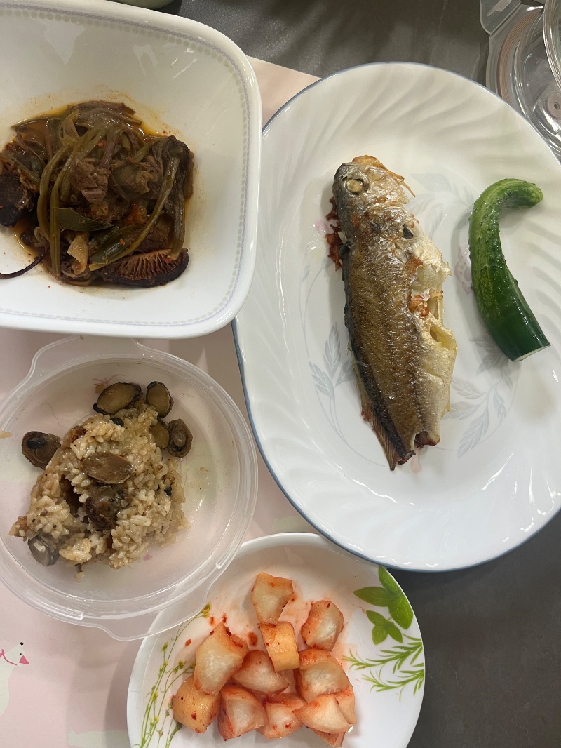 밥은 좀 남겼고, 생선은 두마리 먹었어요!!